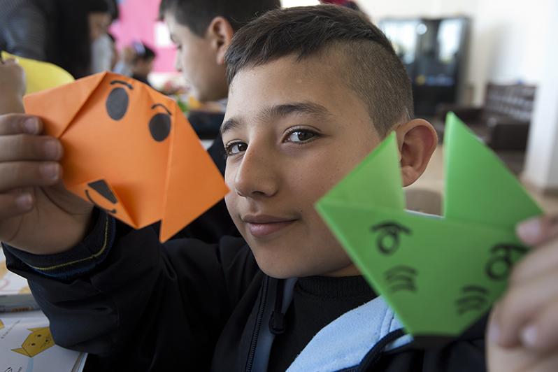 Morning light floods in to the busy classroom at the Tyre Community School highlighting the brightly coloured squares of paper scattered on each desk. A sense of alert concentration fills the air as Origami expert, Seiko…