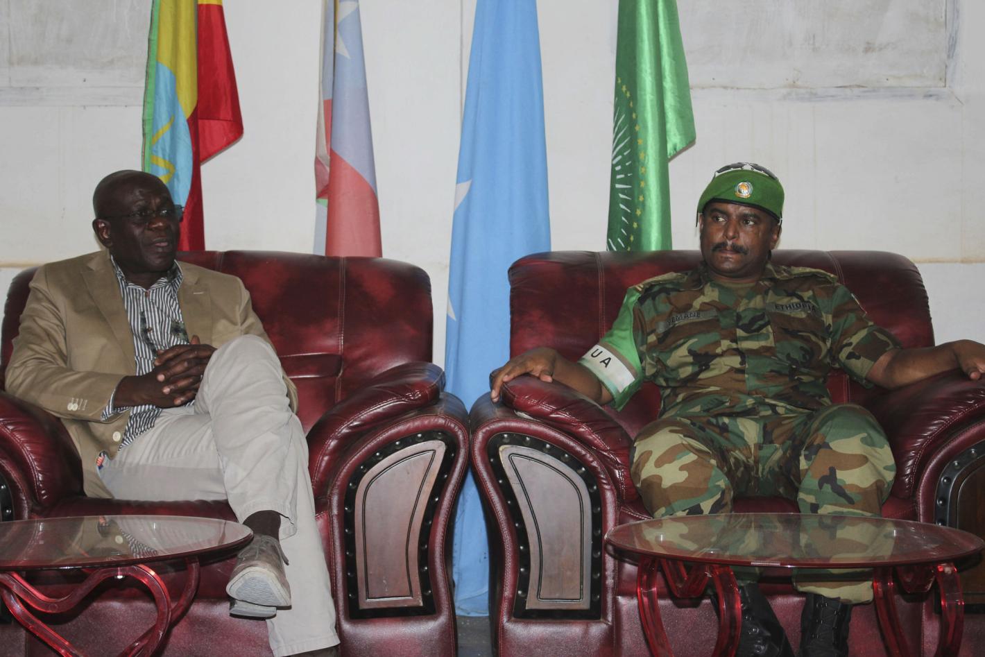 The Ambassador of Japan to Sudan, HE Mr. Hideki Ito, and UNAMID’s Acting Joint Special Representative, Abiodun Bashua, at the Mission’s Headquarters in El Fasher, North Darfur, on 24 May 2015. Photo by Hamid Abdulsalam, UNAMID.