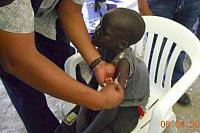 Reading educational material at event in Juba celebrating International Day For Mine Awareness and Assistance in Mine Action. Photo: UNMISS/JC McIlwaine
