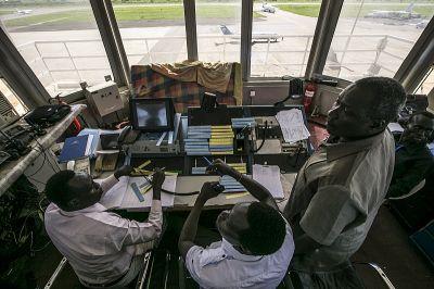 Newly graduated South Sudanese air traffic controllers doing on-the-job training at Juba airport. (See news story) Photo: UNMISS/Isaac Billy