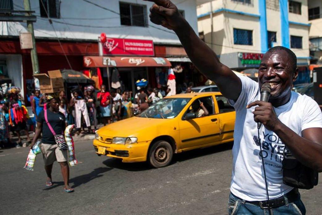 Ten days until the end of UNMIL mission, traditional communicators perform in the streets of Monrovia, Liberia, to announce the near completion of UNMIL's mandate, on March 30.