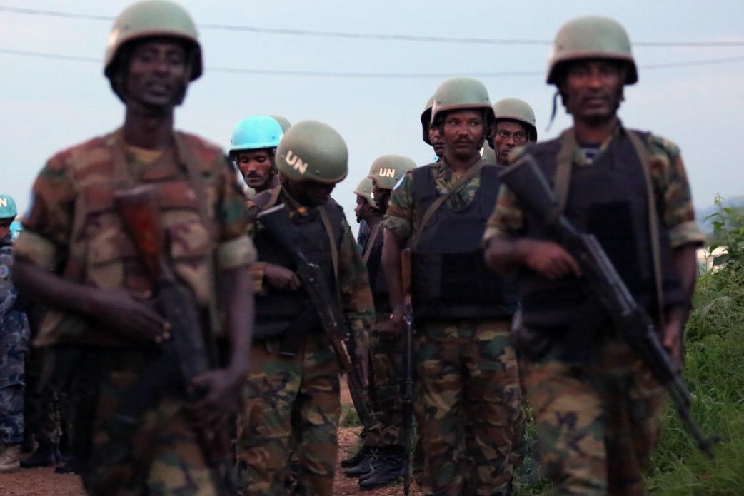 Indian battalion units ensure the safe escort of members of civilian Mission units; here, UN Volunteer Jeanne Warnet. (MONUSCO/Force, 2017)