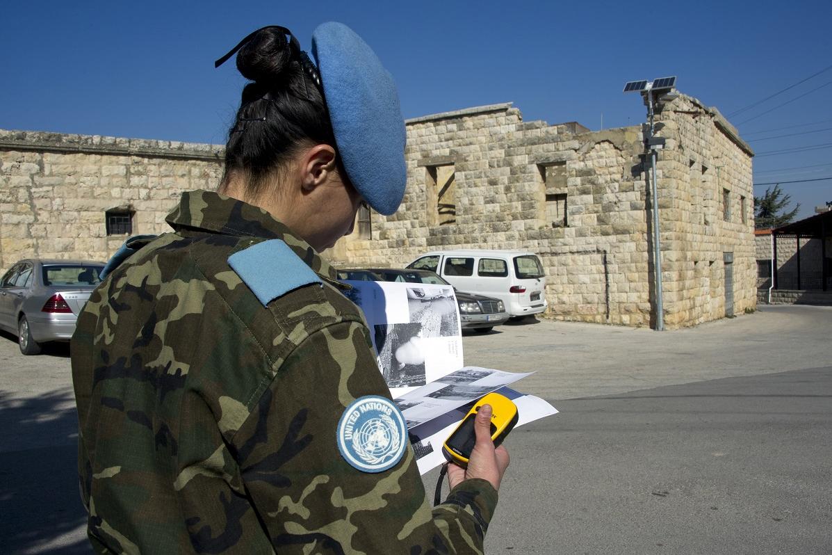 A UNIFIL Spanish Peacekeeper reviews the installation of solar street lighting in Ibl al-Saqi. The electricity supply in South Lebanon is intermittent, with daily power outages that last a few hours at a time. The time and…