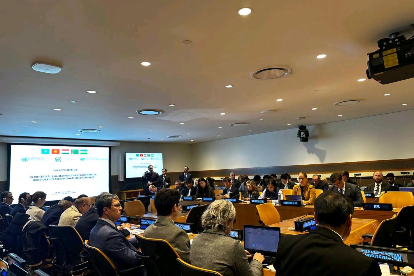 Muhannad Hadi, Deputy Special Coordinator, Resident and Humanitarian Coordinator for the Occupied Palestinian Territory of the Office of the United Nations Special Coordinator for the Middle East Peace Process, briefs reporters at UN Headquarters. (UN Photo/Mark Garten - 17 July 2024)