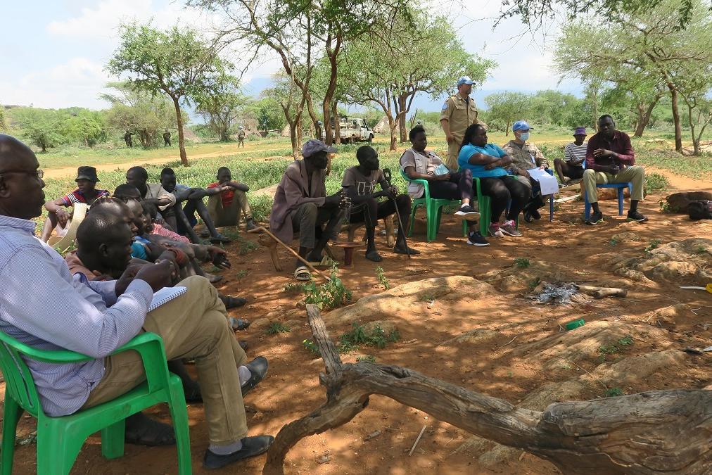 With ongoing cattle raids and revenge attacks, the usually peaceful fabric of life in Ikotos, Eastern Equatoria, is in tatters. People have fled to safer areas, and many have moved out of the country itself. Community members are urgently calling for peace initiatives and dialogue-based interventions, as a visiting integrated peace team led by UNMISS discovered. Photo by Okello James/UNMISS