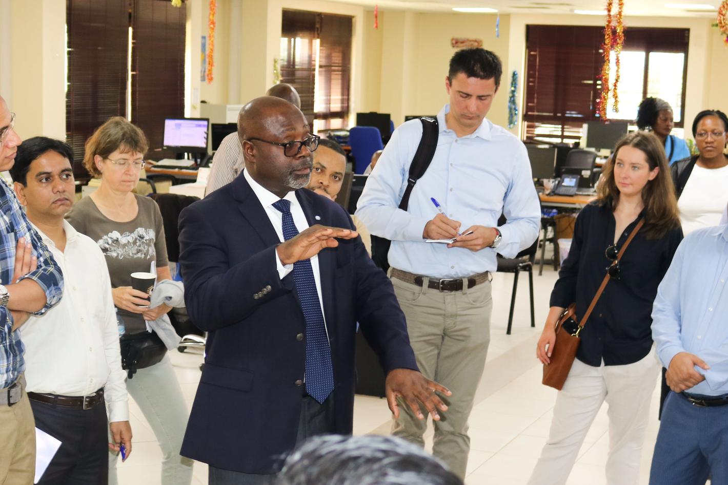 Chief of the RSCE, Mr. Paulin Djomo, explaining the RSCE operations to the delegation.
